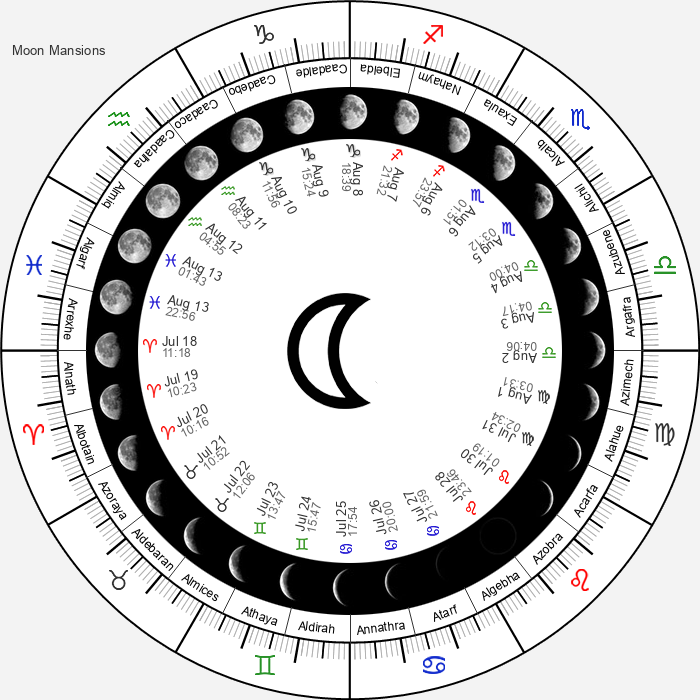 - ดวงจันทร์ในคฤหาสน์ที่ 24 – เป็นที่แพร่หลายสำหรับความเมตตากรุณาของคนที่แต่งงานแล้วสำหรับชัยชนะของทหาร มันทำร้ายการประหารชีวิตของรัฐบาลและป้องกันไม่ให้ออกกำลังกาย (25 ราศีมังกร 42 ถึง 8 ราศีกุมภ์ 34)